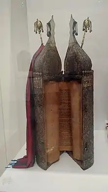 Traditionally, the words of the Torah are written on a scroll by a scribe (sofer) in Hebrew. A Torah portion is read publicly at least once every three days in the presence of a congregation.[10] Reading the Torah publicly is one of the bases of Jewish communal life.