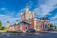 The district contains 98 cultural heritage monuments of federal significance (66 of them in Toropets) and additionally 68 objects classified as cultural and historical heritage of local significance (30 of them in Toropets). The federal monuments include plenty of buildings in the historical center of Toropets, as well as the Ascencion Church in the village of Baranets (19th century), the Dormition Church in the selo of Dopsho (1771), the Saint Nicholas Church in the selo of Metlino (18th century), the Saint Demetrius Church in the village of Nishevitsy (1765), the wooden Intercession Church in the selo of Pokrovskoye (19th century) as well as the ensembles of former estates in the selos of Mikhaylovskoye, Podgorodneye, Khvorostyevo, Chistoye, and Znamenskoye, and a number of archaeological monuments.[18]