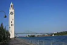 The building of the Montreal clock tower was directed by the Montreal Harbor Commission.[3] The commission which was formed in the year 1830 to oversea the infrastructural development of the Old Port of Montreal and was replaced by the National Harbours Board in 1936.[4] The tower marks the entrance to the Old Port of Montreal and its erection was dedicated to the seamen who died in the First World War.[4] It is a symbol of the port's economic contribution through grain exportation to the city of Montreal during the era of the Clock Tower's construction.[1]