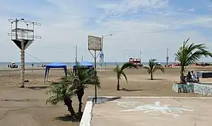 - Chipipe Beach: This is the widest, known and safe beach of the area, has few waves so it is recommended for children and inexperienced people. The calm blue waters, the birds, the beach and beside tall buildings make for a very attractive landscape. In the middle of the beach is the "Salinas Yacht Club".[22]
