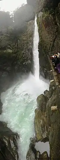 Baños de Agua Santa is a suitable place to practice various adventure sports such as city: rafting, kayaking, canyoning, rock climbing, bungee jumping, horseback riding, nature walks, canopy, mountain biking, etc. Has 5 municipal spas with mineral and sulphurous waters ranging from cold of 18 °C until the hot of 55 °C; emerging from the bowels of the Tungurahua volcano. It has a Pink Zone where more than 30 clubs, bars and discos gives tourists a fun and safe environment.[4] In this city it can access more than 80 restaurants with varied local and international cuisine.