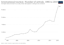 The number of international arrivals has been steadily increasing, up from 2.2 million people in 2009 to 3.6 million in 2011, with per capita spending of $1,850 per visit on average.[14][15]