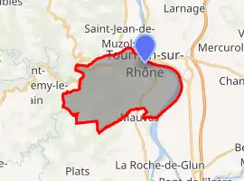 It is located on the right bank of the river Rhône, in the Ardèche departement,[3] opposite Tain-l'Hermitage, (which is located in the Drôme département)