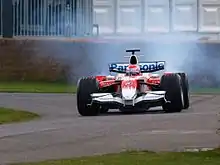 The Toyota TF107 is the car with which the Toyota team competed in the 2007 Formula One season. It was revealed in Cologne on Friday the 12th of January, prior to an exhaustive testing regime. The chassis was designed by Pascal Vasselon, Mark Tatham and Mark Gillan with the engine being designed by Luca Marmorini and Noritoshi Arai overseeing the entire project.