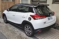 The Chinese market had been previously released the regular XP90 Vitz-based Yaris produced locally by the GAC Toyota joint venture. The XP150 model is also sold in China as the Yaris L (Chinese: 致炫; pinyin: Zhìxuàn), available in 1.3-litre 6NR-FE and 1.5-litre 7NR-FE versions, with either 5-speed manual or 4-speed automatic transmission.[18] The facelifted Yaris L was unveiled at the Auto China in April 2016. A facelift was conducted by the GAC Toyota joint venture, and a sedan version was added based on the Vios sedan (Chinese: 致享; pinyin: Zhìxiǎng), the 4-speed automatic transmission option was replaced by CVT. The crossover-inspired variant of the Yaris L, called Yaris L X (Chinese: 致炫X; pinyin: Zhìxuàn X), was unveiled at the Auto Guangzhou on November 22, 2019, with some design elements from the XP210 series Yaris.[19]