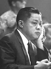 Trương Đình Dzu (10 November 1917 – mid-1980s) was a South Vietnamese lawyer and politician who unsuccessfully ran as a candidate for the presidency in the 1967 elections against Nguyễn Văn Thiệu and his running mate Nguyễn Cao Kỳ, who were the leaders of the incumbent military junta.[1] Dzu finished second in the election and won 17% of the vote on a platform of negotiating with the National Liberation Front for South Vietnam. Politicians advocating coexistence with the communists were not allowed to register; Dzu remained silent on his policies until his candidacy was registered.