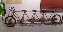 The first bicycle race is popularly held to have been a 1,200 meter race on the 31 May 1868 at the Parc de Saint-Cloud, Paris. It was won by expatriate Englishman James Moore who rode a wooden bicycle with iron tires.[1] The machine is now on display at the museum in Ely, Cambridgeshire, England.