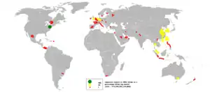 After more than 30 years had trade surpluses, in 2011 the trade deficit came to 2.49 trillion yen ($32 billion), but the previous trade deficit came in 1980 was still a record by 2.6 trillion yen.[5]