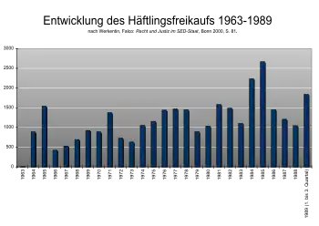 - Falco Werkentin (the data); "NeXXor" (the graph) (January 1998). Entwicklung des Häftlingsfreikaufs. Recht und Justiz im SED-Staat. Bundeszentrale für politische Bildung, Berlin. ISBN 978-3-893-31344-0.