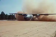 One aspect of the C-160 that made the type well suited to tactical operations was the type's short airfield performance; including the ability to perform steep descents of up to 20 degrees and perform landings on airstrips as short as 400 meters.[14] In the airlift role, a later production C-160 could carry up to 8.5 tons across a distance of 5,000 kilometers, and take off from airstrips as short as 700 meters.[15] Dependent upon aircraft configuration, a single aircraft could airdrop as many as 88 paratroopers or transport up to 93 equipped troops.[16]