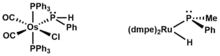 In most complexes with terminal phosphido ligands, phosphorus is pyramidal, as expected with a stereochemically active lone pair of electrons. The M-P bond length in the pyramidal phosphide complex is longer than the M-P bond length in corresponding transition metal phosphine complexes. The pyramidal phosphido complex. In the complex, the Os-PHPh bond is 0.11 Å longer than the Os-PPh3 and the Os-P-C angle is 113o. The elongated Os-PHPh bond is often attributed to the electronic repulsion of the lone pair and nonbonding electrons on Os.[7] Also, in another ruthenium complex, the Ru-P(Me)Ph bond is 0.17 Å longer than Ru-PH(Me)Ph in the related phosphine ligand version of the complex, [(dmpe)2Ru(H)PH(Me)Ph]+.[8] Additionally electronic repulsion of the P-centered lone pair and metal-based electrons enhance the nucleophilicity of the phosphide ligand. This high basicity and high nucleophilicity leads to the dimerization reaction.