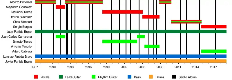 - Juan Carlos Camarena – rhythm guitar (1990–1992, 2004–2005)