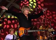 In April 1973, Deep Purple members Ritchie Blackmore, Jon Lord and Ian Paice attended a Trapeze show at the Whisky a Go Go in Los Angeles, California, with a view to asking Hughes to replace bassist Roger Glover in the band. When approached at another show the following month, Hughes declined the invitation in favour of remaining with Trapeze, claiming that he was "in a very, very different frame of mind as a musician" at the time and dubbing Deep Purple "too basic rock for me".[25] However, due to the high-profile status of the group at the time, combined with the prospect of working with former Free frontman Paul Rodgers, who had been approached to replace vocalist Ian Gillan, Hughes reconsidered and agreed to join the band as bassist and second vocalist.[26] The lineup change was officially announced in the music magazine Melody Maker on 14 July 1973.[27] Rodgers ultimately passed on the opportunity to join, focusing instead on the formation of Bad Company.[25] David Coverdale was brought in as Gillan's replacement later, after contacting the group in response to the Melody Maker article, which mentioned that they were still looking for a new singer.[28] Hughes has since described the choice to leave Trapeze as a "horrible" one to make, dubbing the band his "family" and claiming in multiple interviews that to some extent he regrets leaving.[29][30]