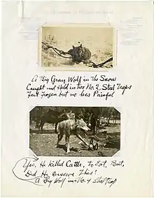 Neolithic hunters, including the members of the Cucuteni-Trypillian culture of Romania and Ukraine (c. 5500–2750 BCE), used traps to capture their prey.[1] An early mention in written form is a passage from the self-titled book by Taoist philosopher Zhuangzi describes Chinese methods used for trapping animals during the 4th century BCE. The Zhuangzi reads, "The sleek-furred fox and the elegantly spotted leopard ... can't seem to escape the disaster of nets and traps."[2][3] "Modern" steel jaw-traps were first described in western sources as early as the late 16th century.[4] The first mention comes from Leonard Mascall's book on animal trapping.[5] It reads, "a griping trappe made all of yrne, the lowest barre, and the ring or hoope with two clickets." [sic][6] The mousetrap, with a strong spring device mounted on a wooden base, was first patented by William C. Hooker of Abingdon, Illinois, in 1894.[7][8]