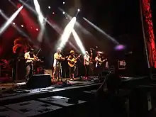 Despite the numerous accolades and awards the band received, Del recognized that the band needed to think about their future saying, "If something ever happens to me ... you should think about doing something now, instead of starting out cold. This is a progression." Ronnie says, "We had to figure out something we could do, while still performing with my dad. We don’t want this to be the Del-less McCoury Band."[2] The band was presented with an opportunity at the annual Delfest Music Festival, an annual bluegrass festival in Cumberland, Maryland, held at the Allegany County Fairgrounds that was started by Del McCoury.[3] At Delfest, the band met The Lee Boys, a funk and gospel band, and played together through the weekend, finding an immediate connection. Plans were made for the two bands, minus Del McCoury, to hit the road for brief tour in the Southeast in January 2009.[4] The band took the name the Travelin' McCourys for the brief tour. Since then they have regularly toured across the country, sharing the stage and collaborating with a number of artists including, Jeff Austin, Keller Williams, and Bill Nershi.