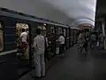 Tretyakovskaya (Russian: Третьяко́вская. English: Tretyakov's) is a station complex of Moscow Metro located in the Zamoskvorechye District, Central Administrative Okrug. It offers a cross-platform interchange between Kaluzhsko-Rizhskaya and Kalininsko-Solntsevskaya lines. It is named after the nearby Tretyakov Gallery.
