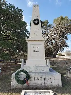 The German-American Treue der Union Monument (Loyalty to the Union), is located in the Kendall County community of Comfort in the U.S. state of Texas. It was dedicated on August 10, 1866 to commemorate the German-Texans who died at the 1862 Nueces massacre. Thirty-four were killed, some executed after being taken prisoner, for refusing to sign loyalty oaths to the Confederacy. With the exception of those drowned in the Rio Grande, the remains of the murdered are buried at the site of the monument. This monument was the first authorized to fly the Star-Spangled Banner at half-mast in perpetuity. It was listed on the U.S. National Register of Historic Places in 1978.[1]