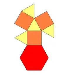| Faces | 1+3 triangles 3 squares 1 hexagon |