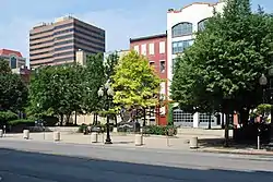 Tricentennial Park is an urban park in Albany, New York built to commemorate that city's three hundredth anniversary as an incorporated city and is the site of several statues and monuments. The park encompasses the entire block bounded by Broadway to the east, Columbia Street to the north, James Street to the west, and Steuben Street to the south. First proposed in 1914 it was built in 1986 as part of the tricentennial celebrations of Albany's incorporation as a city in association with the renovation of the Albany Union Station.