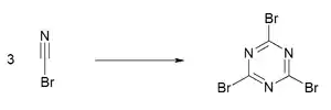 Cyanogen chloride and cyanogen bromide each trimerize at elevated temperatures over a carbon catalyst.[1] The chloride gives cyanuric chloride: