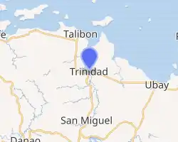 Trinidad, officially the Municipality of Trinidad (Cebuano: Munisipyo sa Trinidad; Tagalog: Bayan ng Trinidad), is a 3rd class municipality in the province of Bohol, Philippines. According to the 2020 census, it has a population of 35,119 people. [3]