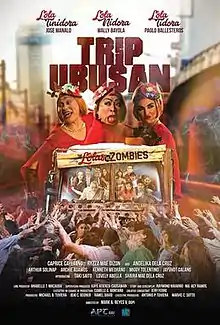 Trip Ubusan: The Lolas vs. Zombies is a 2017 Filipino zombie comedy film directed by Mark A. Reyes, starring Jose Manalo, Wally Bayola and Paolo Ballesteros.[1] It is a spin-off film of Eat Bulaga!'s segment, Kalyeserye. The film's name is a play on the title of the 2016 South Korean film, Train to Busan. It is under the production of M-Zet Productions, to be part by APT Entertainment, and was released in Philippine cinemas on November 22, 2017.[2]