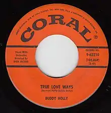 "True Love Ways" is a song attributed to Norman Petty and Buddy Holly. Buddy Holly's original was recorded with the Dick Jacobs Orchestra in October 1958, four months before the singer's death. It was first released on the posthumous album The Buddy Holly Story, Vol. 2 (Coral 57326/757326), in March 1960. The song was first released as a single in Britain in May 1960, reaching number 25 on the UK Singles Chart. It was released the following month in the US, but did not make the charts. In 1988, a UK re-release of the recording by MCA, the single reached no. 65 on the UK singles chart in a 5 week chart run.[1]