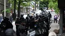 The Trump Free Speech Rally was a demonstration organized by Patriot Prayer on June 4, 2017, in Portland, Oregon, in support of President Donald Trump.[1] Several hundred participants gathered, along with a larger group of counter-protesters who organized the Portland Stands United Against Hate Rally outside City Hall. Police worked to keep the groups separate and closed neighboring Chapman Square where anti-fascist demonstrators had gathered. Officers clashed with this particular group of demonstrators, and fourteen people were arrested. Many weapons were confiscated, but there were no reported injuries.