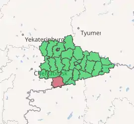 Tselinny District (Russian: Цели́нный райо́н) is an administrative[1] and municipal[4] district (raion), one of the twenty-four in Kurgan Oblast, Russia. It is located in the south of the oblast. The area of the district is 3,460 square kilometers (1,340 sq mi). Its administrative center is the rural locality (a selo) of Tselinnoye.[1] Population: 17,187 (2010 Census);[2] 23,058 (2002 Census);[6] 25,316 (1989 Census).[7] The population of Tselinnoye accounts for 29.5% of the district's total population.[2]