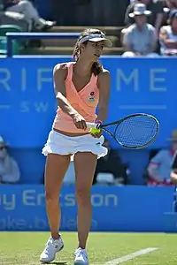 Tsvetana Kirilova Pironkova (Bulgarian: Цветана Кирилова Пиронкова [tsvɛˈtanɐ piroŋˈkɔvɐ]; born 13 September 1987) is a Bulgarian professional tennis player. Considered to be one of the best grass court players of her generation, she has been noted for her "cerebral" skills on the surface, reaching the semifinals at the Wimbledon Championships.[2][3] Pironkova also found success playing on the quick hardcourts throughout her career, winning a title in Sydney and reaching the quarterfinals of the US Open.[4][5]
