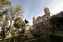 Tupiza is a city in Potosí Department, Bolivia. It is located at an elevation of about 2850 m. The population is 25,709 (2012 estimate). Tupiza and its environs are characterized by dramatic red escarpments which jut ruggedly skyward from the coarse, gray terrain; green agricultural land adjacent to the nearby Tupiza River provides welcome respite from the otherwise arid, thorny surroundings. The area quebradas are susceptible to flash flood runoff from sudden cloudbursts.[1]