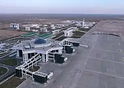 On 26 February 2018, the opening ceremony of the new airport took place, which President of Turkmenistan Gurbanguly Berdimuhamedow attended.[8] The capacity of the airport complex is 500 passengers per hour. The runway is 3800 meters long and 65 meters wide, and is equipped with modern light-signal and meteorological systems.[9] The airport is capable of accepting any type of aircraft.[10] The airport cargo terminal is designed to handle 200 thousand tons of cargo per year. A centralized refueling station allows service of several aircraft simultaneously.