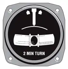 In aviation, the turn and slip indicator (T/S, a.k.a. turn and bank indicator) and the turn coordinator (TC) variant are essentially two aircraft flight instruments in one device. One indicates the rate of turn, or the rate of change in the aircraft's heading; the other part indicates whether the aircraft is in coordinated flight, showing the slip or skid of the turn. The slip indicator is actually an inclinometer that at rest displays the angle of the aircraft's transverse axis with respect to horizontal, and in motion displays this angle as modified by the acceleration of the aircraft.[1] The most commonly used units are degrees per second (deg/s) or minutes per turn (min/tr).