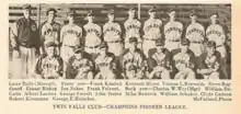 The Twin Falls Cowboys were a Class C minor league baseball team from 1939 to 1942 and 1946 to 1951 in the Pioneer League. Their affiliation was with the Seattle Rainiers in 1939, and later the New York Yankees from 1946 to 1951. The Cowboys played at Jaycee Field in Twin Falls, Idaho, located in the northeast corner of the city's Harmon Park.[1][2]