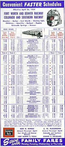 The Twin Star Rocket was a passenger train operated by the Chicago, Rock Island and Pacific Railroad. Introduced on January 14, 1945, it was the only new streamlined train permitted to enter service in World War II by the U.S. government.[1] The new train became the second longest north–south train itinerary under the management of a single railroad in the United States (and the longest measured by great circle distance) with its northern terminal at the Milwaukee Road’s Minneapolis depot and southern terminal 1,363 miles (2,194 km) away at Houston, Texas.[2] The name of the new streamlined train was derived from its terminal states—Texas being known as the Lone Star State and Minnesota as the North Star State. Additionally, the name references Minneapolis being one of the Twin Cities and Houston's aerospace industry and culture.