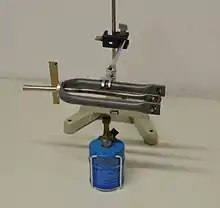 Tyndall's bar breaker is a physical demonstration experiment to demonstrate the forces created by thermal expansion and shrinkage. It was demonstrated 1867 by the Irish scientist John Tyndall in his Christmas lectures for a "juvenile auditory".[1][2]