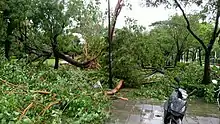 At least two people were killed in Taiwan.[29] Nearly 1 million households lost power and 720,000 lost water supply.[30] Agricultural damage exceeded NT$850 million (US$26.8 million).[31] A small lighthouse in Taitung County collapsed and rough seas unmoored 10 vessels in Kaohsiung Harbor.[27]