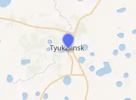 Tyukalinsk (Russian: Тюкали́нск) is a town in Omsk Oblast, Russia, located 60 kilometers (37 mi) northeast of the Nazyvayevsk railway station on the Trans-Siberian Railway and 120 kilometers (75 mi) northwest of Omsk, the administrative center of the oblast. Population: 11,275(2010 Census);[2] 12,007(2002 Census);[7] 12,191(1989 Census).[8]