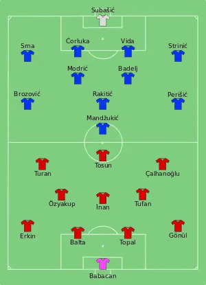 - "Tactical Line-ups – Turkey v Croatia" (PDF). UEFA.com. Union of European Football Associations. 12 June 2016. Retrieved 12 June 2016.