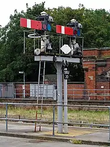 - "Master Rulebook: Signals, hand signals, indicators and signs handbook. Section 2.7 "Position Light Signals"" (PDF). Network Rail. Retrieved 30 August 2020.