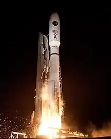 USA-246 was launched by United Launch Alliance, aboard an Atlas V 531 flying from Space Launch Complex 41 (SLC-41) at the Cape Canaveral Air Force Station (CCAFS). After a number of weather-related delays, the launch occurred at 08:10:00 UTC on 18 September 2013,[3] placing the satellite in a parking orbit of 178 kilometers by 1,041 kilometers. A second burn placed the satellite into a geostationary transfer orbit (GTO) with a perigee of 225 km (140 mi), an apogee of 50,051 km (31,100 mi), and 20.52° inclination.[4] The satellite was successfully deployed in this orbit 50 minutes after launch.[1]