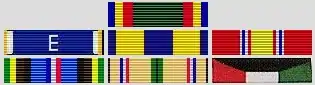- Bottom row – Armed Forces Expeditionary Medal (2-Persian Gulf, 1-Somalia), Southwest Asia Service Medal, Defense and Liberation of Kuwait Medal (Kuwait)