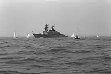 | Propulsion | 4 × General Electric LM2500 gas turbines, 2 shafts, 80,000 shp (60 MW) |