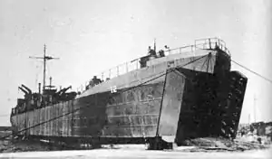 LST-12 was assigned to the European theater and participated in the Sicilian occupation in July and August 1943, and the Invasion of Reggio and the Salerno landings in September 1943. On 13 November 1943, she struck a mine but was able to make Ferryville under her own power to be repaired.[6] However, records indicate that she was also part of Convoy BM 74 from 11 November to 16 November 1943, traveling from Bombay, India to Colombo, British Ceylon.[7]