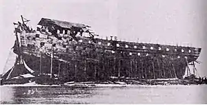 ![]() The incomplete USS New Orleans in 1883, the year she was sold for scrapping | |
