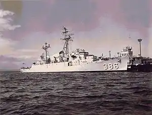 From October 1965 through October 1968 the ship made five more tours off Vietnam on Operation Market Time,[1] operating 50–100 yards (46–91 m) offshore, searching junks and small fishing boats for Viet Cong weapons and infrequently providing naval gunfire support with her two 3-inch (76 mm) guns from 1 to 15 January, 12 June to 16 September 1966, 24 August to 8 September 1967, 16 September to 12 October and 2 to 18 December 1968. She made Taiwan Strait patrols in June, September, and December 1967; and in July and October 1968.[1]
