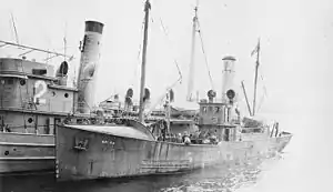 ![]() USS Surf (SP-341) tied up beside another ship. | |