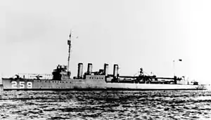 The first USS Turner (DD-259) was a Clemson-class destroyer in commission in the United States Navy from 1919 to 1922. She served in a non-commissioned status as the water lighter YW-56 from 1936 to 1943, and was in commission as a miscellaneous auxiliary, the second USS Moosehead (IX-98), from 1943 to 1946.