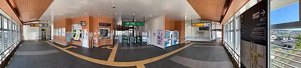 The station has a "Midori no Madoguchi" staffed ticket office. Suica farecard can be used at this station.[1]