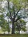An old elm with leaves close to herbarium specimens of Späth's 'Tiliaefolia', stands (2016) in Belgrave Cescent Gardens, Edinburgh.